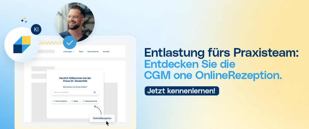 Ihr Assistent für weniger Stress und mehr Ruhe am Empfang: Die CGM one OnlineRezeption ist die zentrale Lösung für Ihre schriftliche Patientenkommunikation.